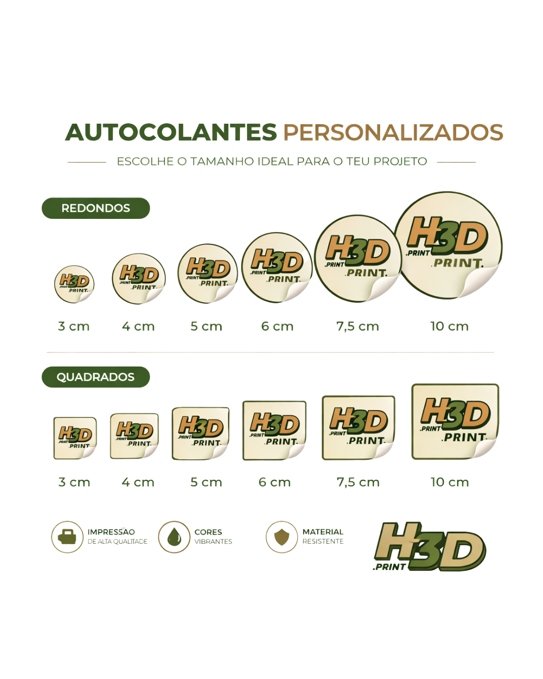 Dá destaque à tua marca, produtos ou eventos com os nossos autocolantes personalizados de alta qualidade. Ideais para embalagens, brindes, decoração ou identificação, são uma solução prática e profissional para qualquer negócio.