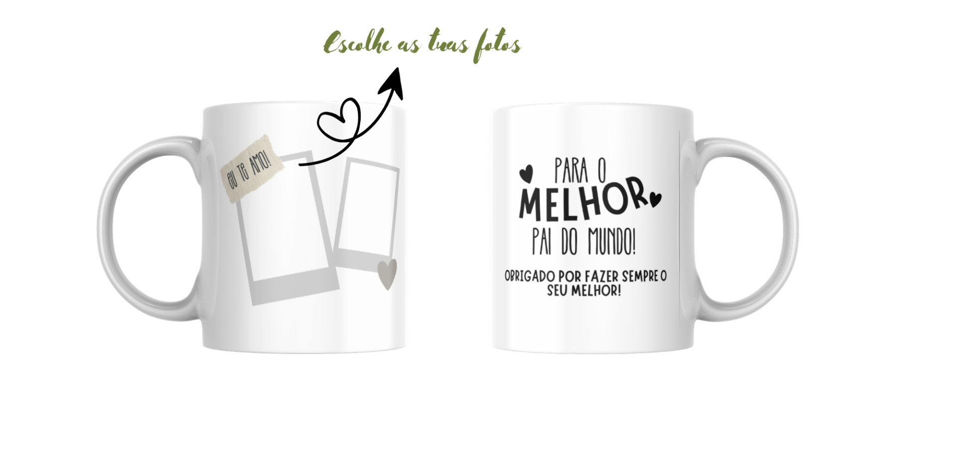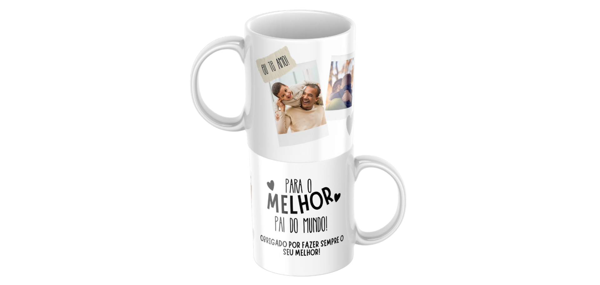 Surpreende o teu pai com uma caneca única e cheia de significado ❤️ Personaliza com até 2 fotografias à tua escolha e cria uma lembrança especial que ele poderá usar todos os dias.