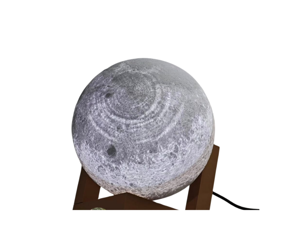 Transforma qualquer ambiente com o brilho suave e encantador da Luminária Lua 3D. Inspirada no real relevo lunar, esta peça decorativa recria todos os detalhes da superfície da lua, trazendo um toque de tranquilidade, romantismo e elegância para o teu espaço.