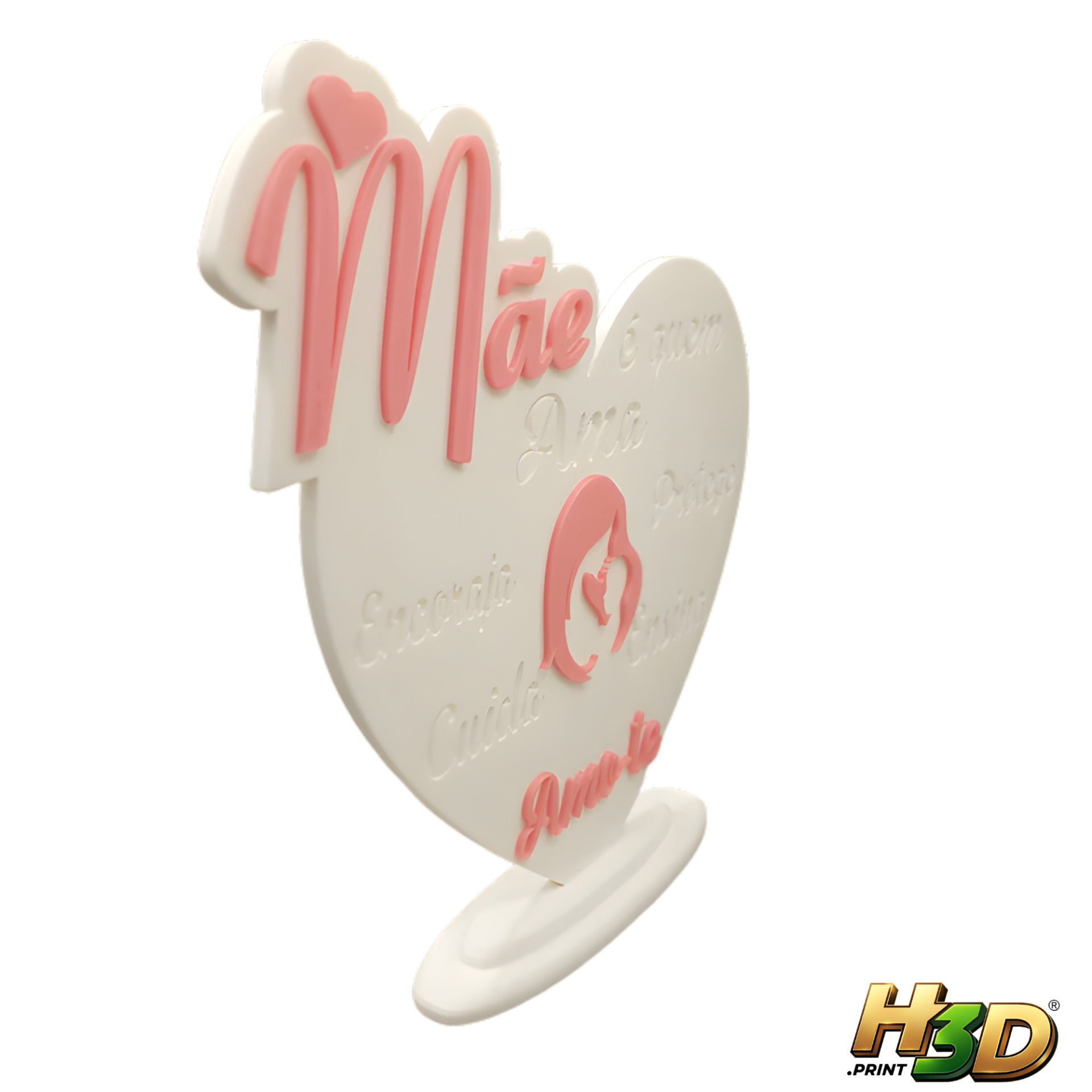Esta moldura em formato de coração, produzida em impressão 3D, é o presente perfeito para surpreender a mãe com uma recordação duradoura e personalizada.