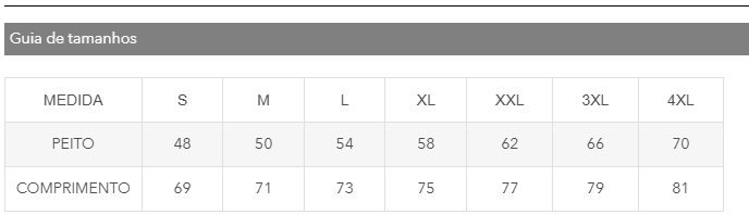 Confeccionada em tecido tubular. Gola redonda em rib 1x1 com cobrecosturas a tom.