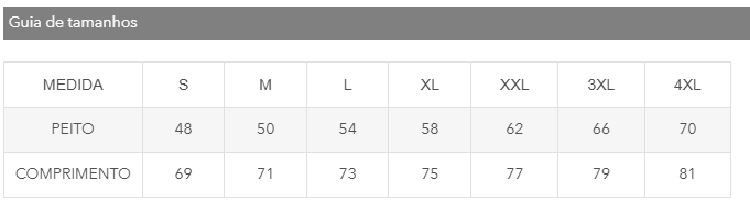 Confeccionada em tecido tubular. Gola redonda em rib 1x1 com cobrecosturas a tom.