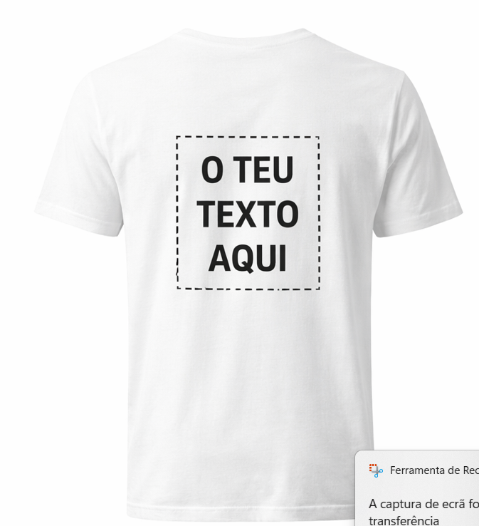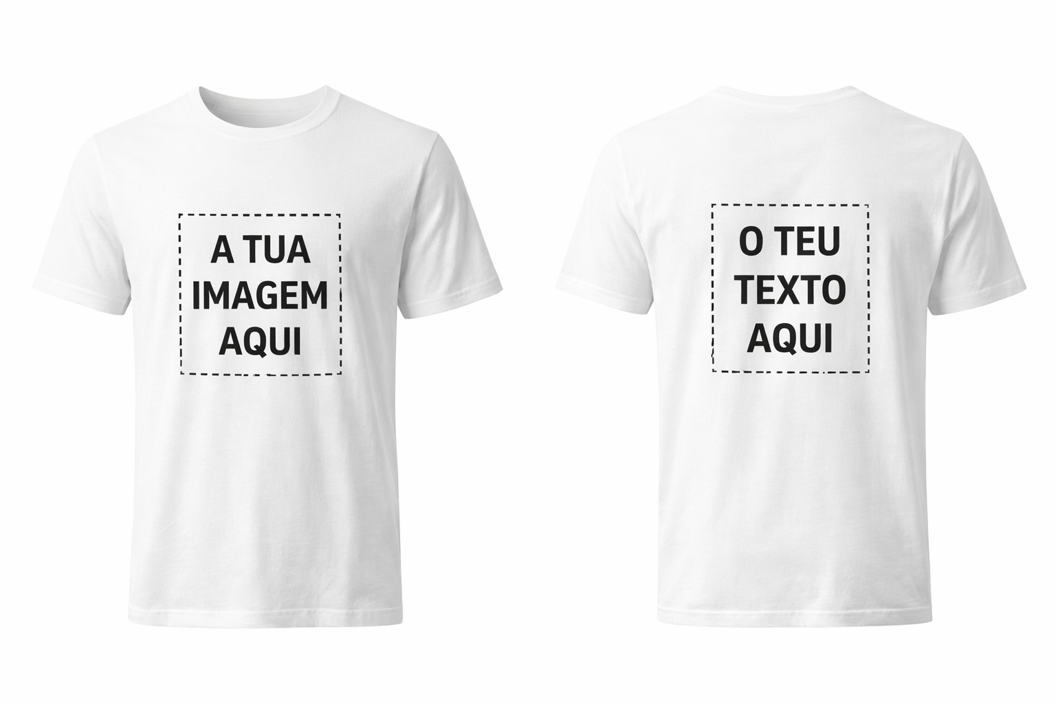 Personaliza a tua t-shirt com nome, frase, imagem, fotografia, logótipo ou design exclusivo. Ideal para uso pessoal, presentes especiais ou para empresas que querem destacar a sua marca.